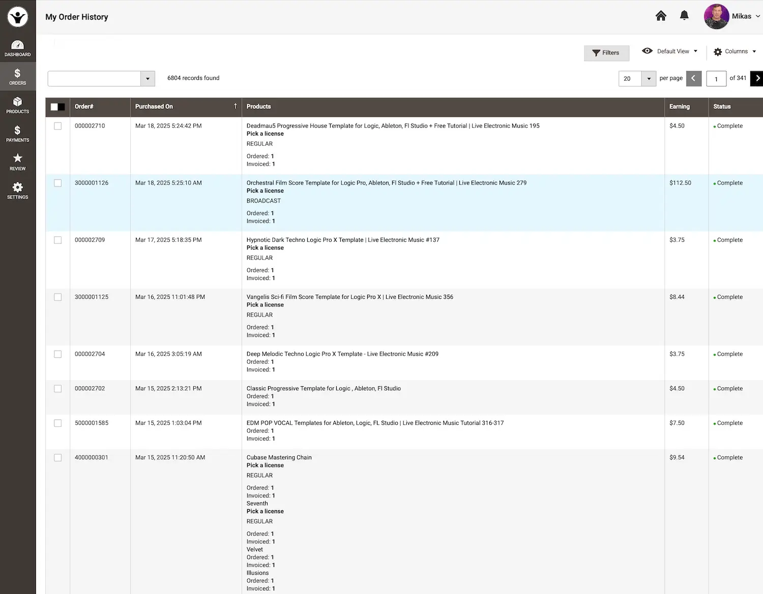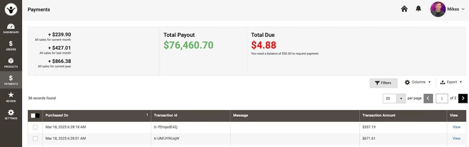 - Click it to see a breakdown, including products sold and amounts earned per transaction.