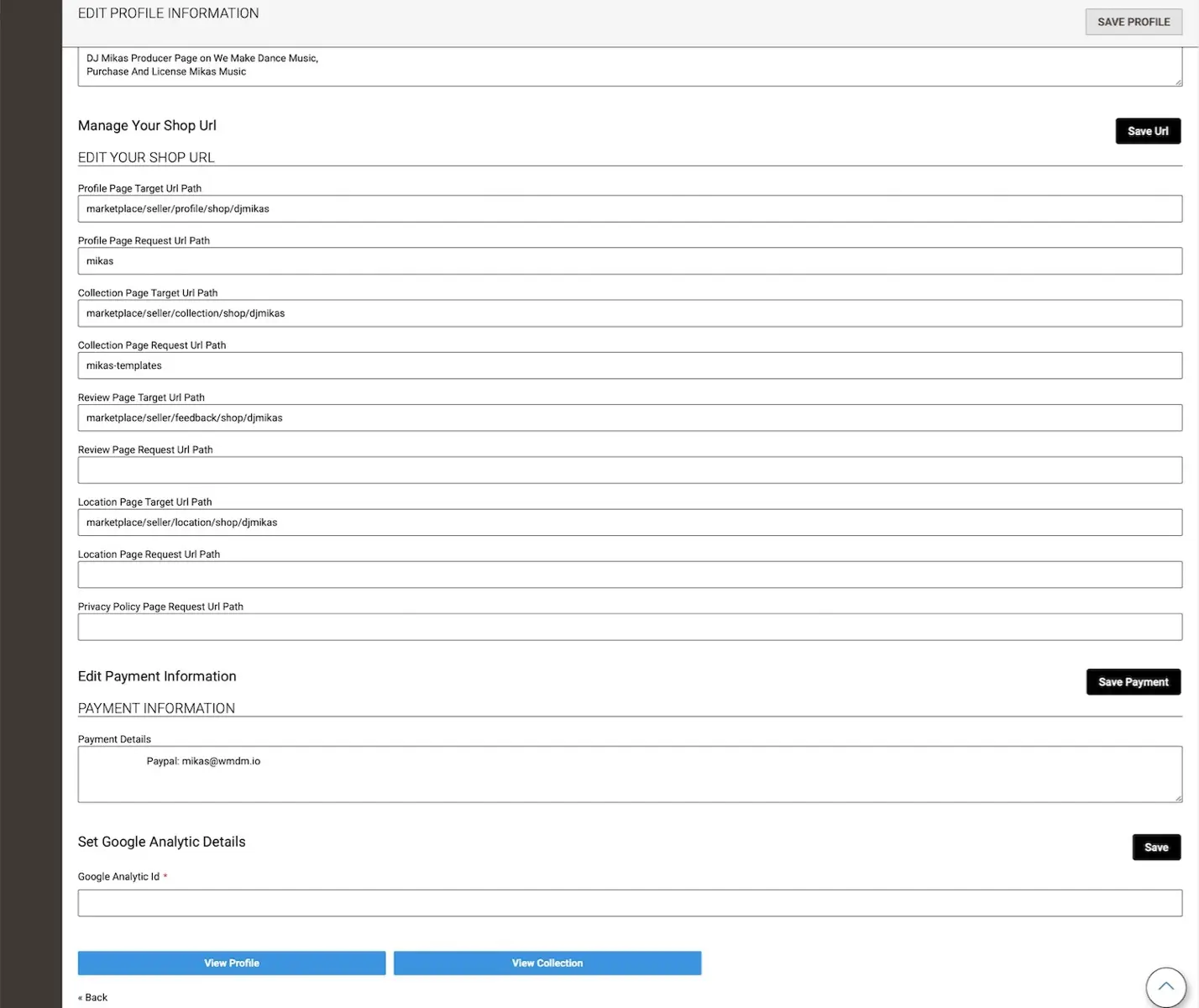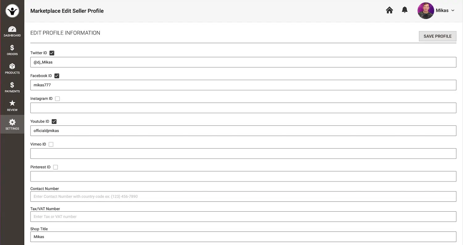 - Purpose: Customize your seller profile and configure payment details.